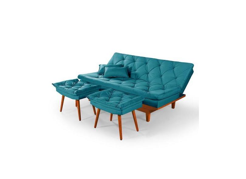 Sofa Cama Reclinavel Caribe + Duas Banquetas Rubi Essencial - Essencia