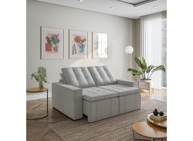 Sofá Cama Retrátil e Reclinável 3 Lugares 180cm em Linho com Molas e Braço Reto Palmeira Cabecasa Ma Prata