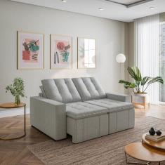 Sofá Cama Retrátil E Reclinável 3 Lugares 180cm Em Linho Palmeira Cabe