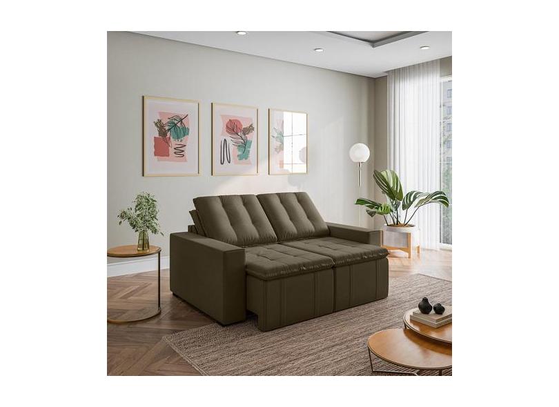 Sofá Cama Retrátil E Reclinável 3 Lugares 180cm Em Veludo Palmeira Cab