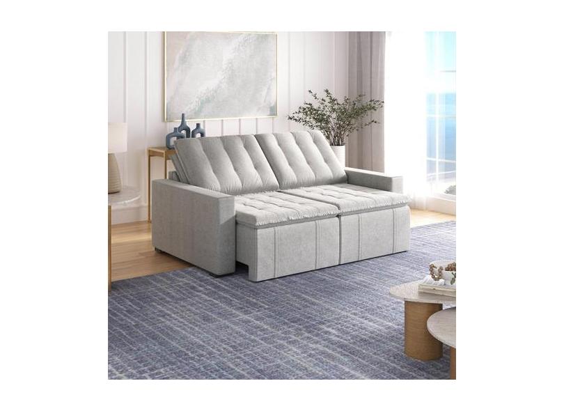 Sofá Cama Retrátil E Reclinável 3 Lugares 200cm Em Linho Palmeira Cabe