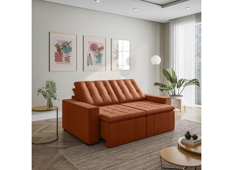 O menor preço encontrado no Brasil para Sofá Cama Retrátil e Reclinável 3 Lugares 200cm em Veludo com Molas e Braço Reto Palmeira Cabecasa M Terracota atualmente é R$ 2.917,62.
