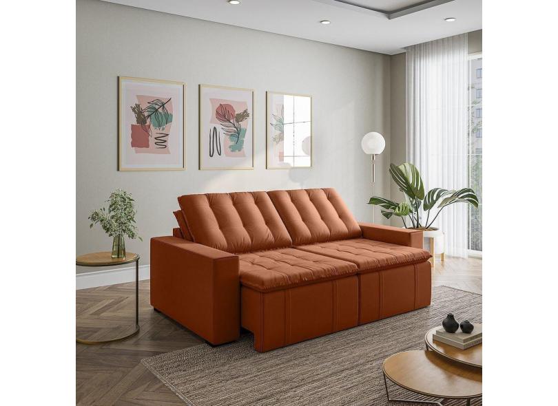 O menor preço encontrado no Brasil para Sofá Cama Retrátil e Reclinável 3 Lugares 220cm em Veludo com Molas e Braço Reto Palmeira Cabecasa M Terracota atualmente é R$ 3.011,74.