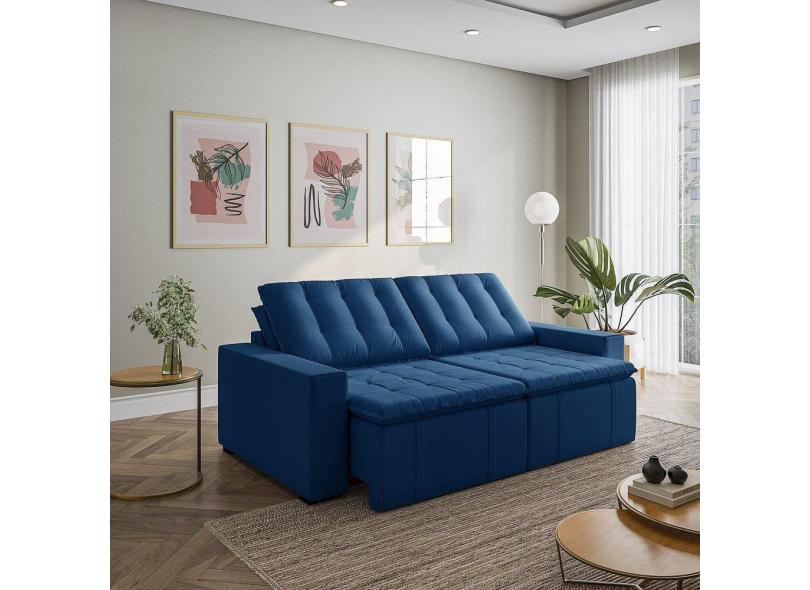 O menor preço encontrado no Brasil para Sofá Cama Retrátil e Reclinável 3 Lugares 260cm em Veludo com Molas e Braço Reto Palmeira Cabecasa M Azul atualmente é R$ 3.482,34.