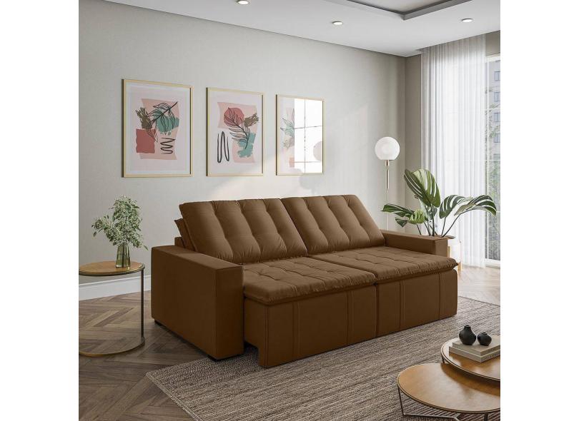 O menor preço encontrado no Brasil para Sofá Cama Retrátil e Reclinável 4 Lugares 240cm em Veludo com Molas e Braço Reto Palmeira Cabecasa M Marrom atualmente é R$ 3.849,97.