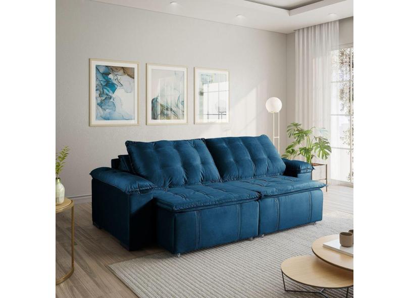 Sofá Cama Retrátil e Reclinável 4 Lugares 240cm em Veludo com Molas Palmeira CabeCasa MadeiraMadeira Azul