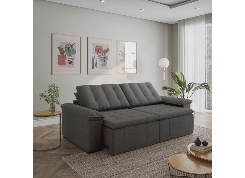 Sofá Cama Retrátil e Reclinável 4 Lugares 240cm Linho com Molas Palmeira Cabecasa Madeiramadeira
