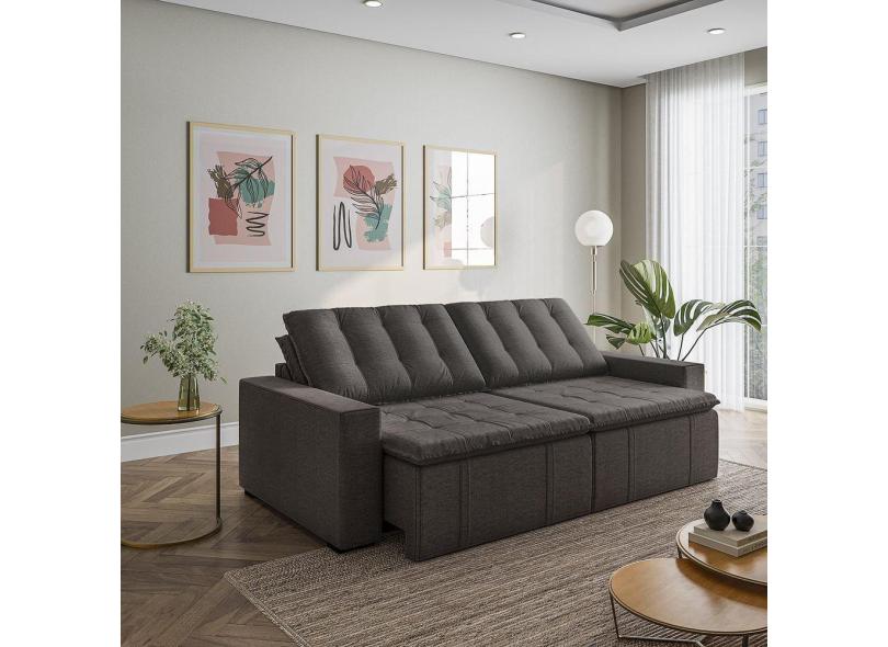 Sofá Cama Retrátil e Reclinável 4 Lugares 280cm em Linho com Molas e Braço Reto Palmeira Cabecasa Ma Cinza