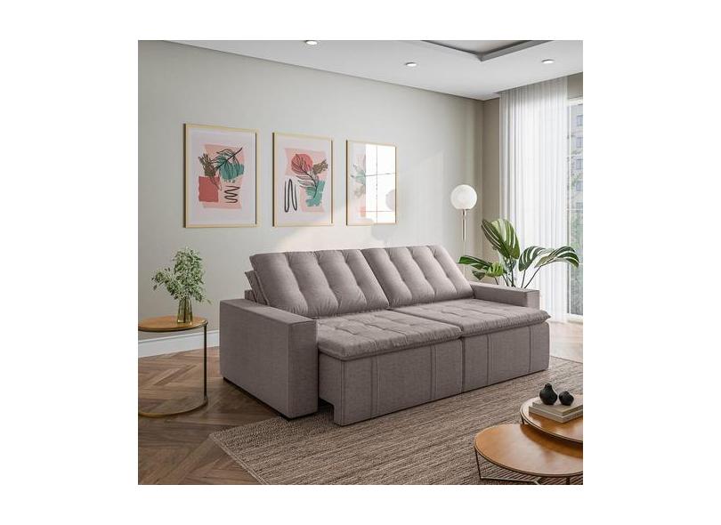Sofá Cama Retrátil E Reclinável 4 Lugares 280cm Em Linho Palmeira Cabe
