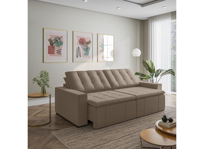 Sofá Cama Retrátil e Reclinável 4 Lugares 280cm em Veludo com Molas e Braço Reto Palmeira Cabecasa M Castor