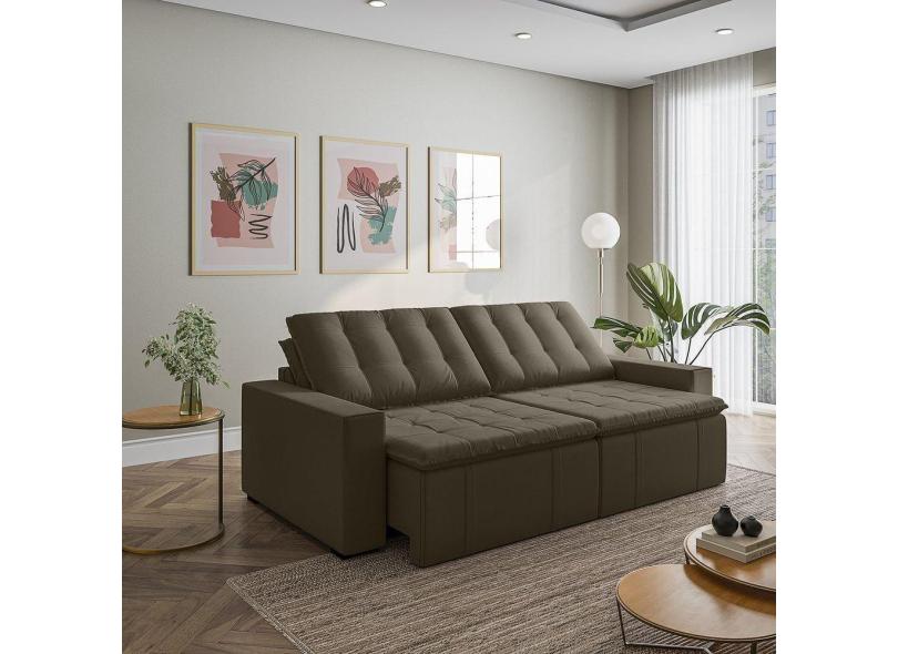 Sofá Cama Retrátil e Reclinável 4 Lugares 280cm em Veludo com Molas e Braço Reto Palmeira Cabecasa M Grafite