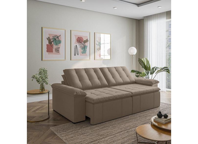 Sofá Cama Retrátil e Reclinável 4 Lugares 280cm em Veludo com Molas Palmeira Cabecasa Madeiramadeira Castor