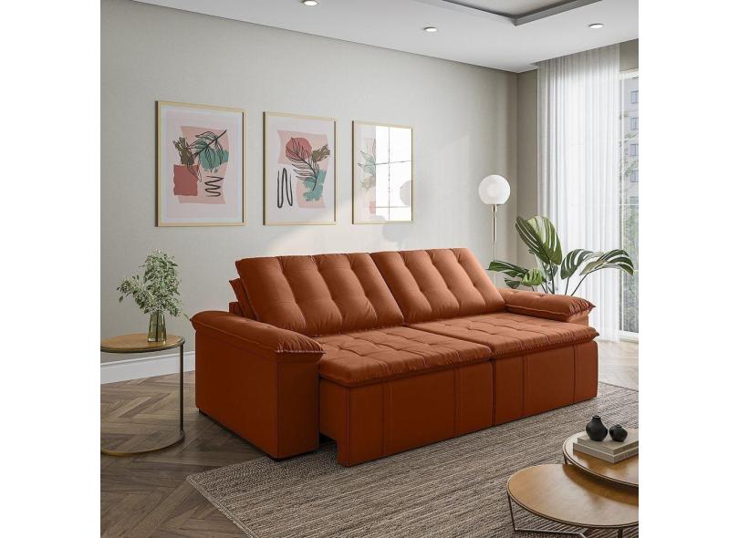 O menor preço encontrado no Brasil para Sofá Cama Retrátil e Reclinável 4 Lugares 280cm em Veludo com Molas Palmeira Cabecasa Madeiramadeira Terracota atualmente é R$ 3.799,98.