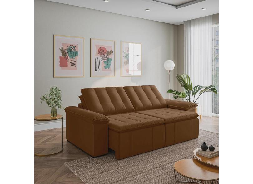 Sofá Cama Retrátil Palmeira 3 Lugares 260cm em Veludo com Molas Cabecasa MadeiraMadeira