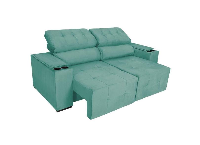 Sofá Cama Retrátil Sala Vicenza Vicenza 210cm Suede Azul Tiffany