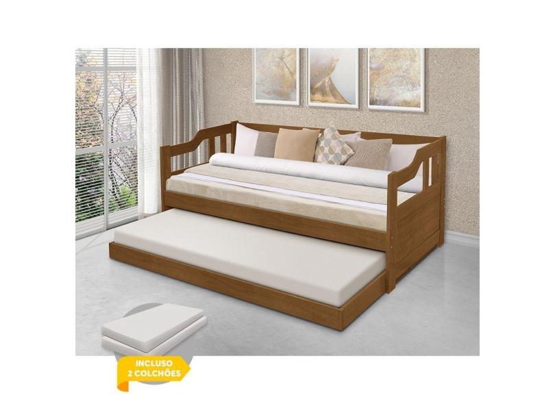Sofá Cama Solteiro Com Cama Auxiliar Madeira Maciça - Kit 2 Atraente - Imbuia - Cor: Marrom