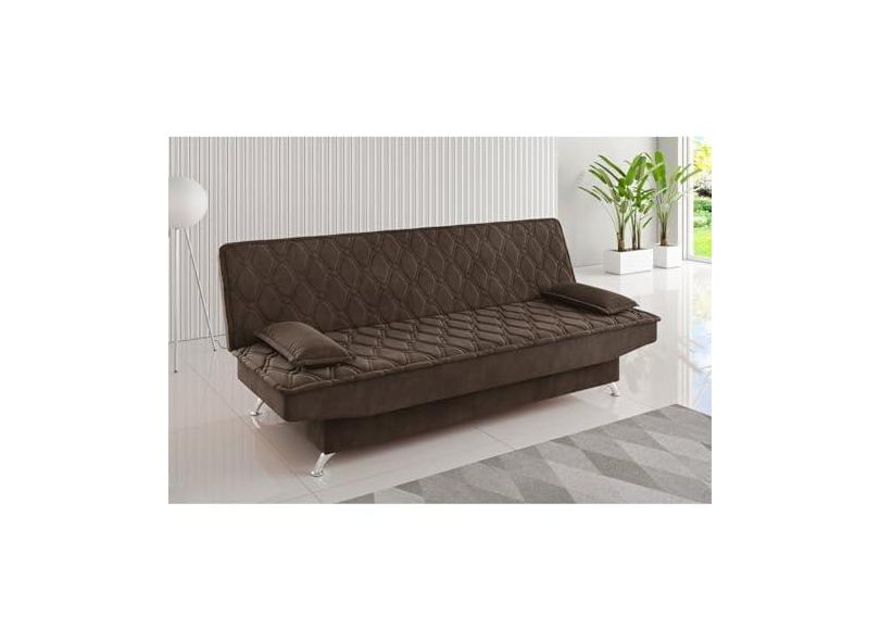 Sofa Cama Zenite 3 Lugares Reclinável com 2 Almofadas Soltas Veludo Bombom