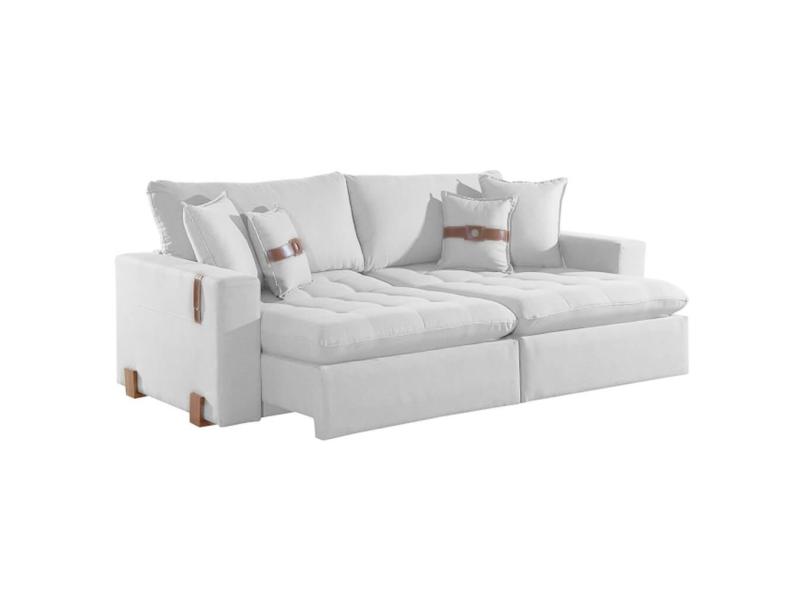 Sofá Cama Zeus 4 Lugares Retrátil e Reclinável 240cm Tecido Linho Innove Cor Gelo