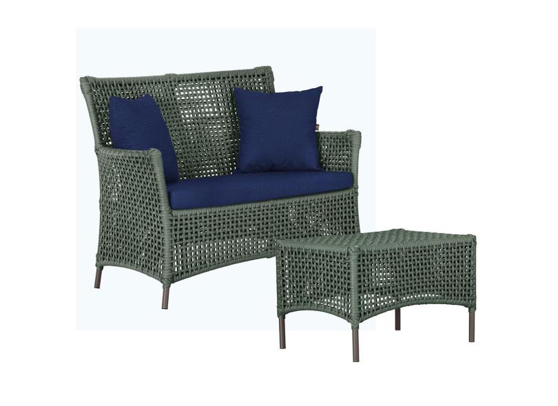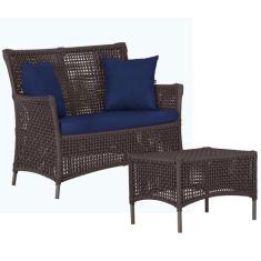 1 Sofá Área e Mesa Igapó Alumínio Pintura Marrom Corda Náutica Estofado Impermeável Almofada 10 Trama