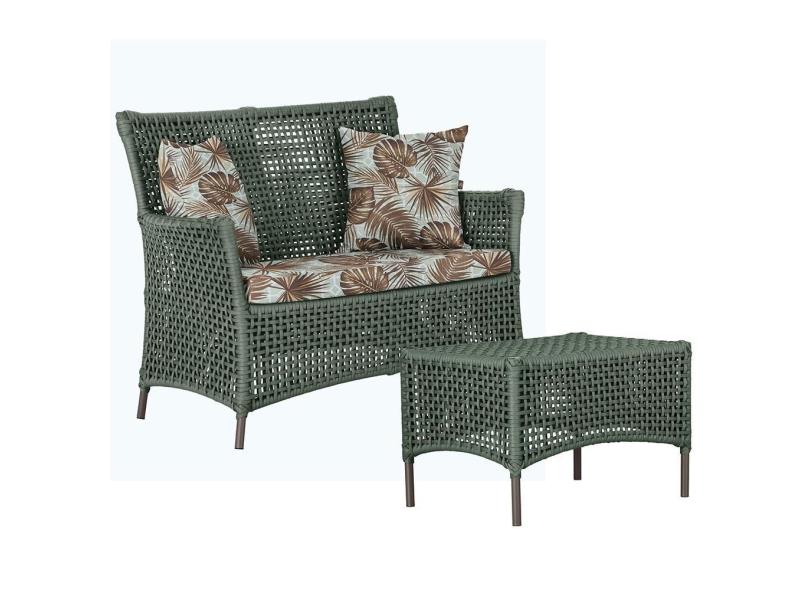 1 Sofá Área e Mesa Igapó Alumínio Pintura Marrom Corda Náutica Estofado Impermeável Almofada 6 Trama