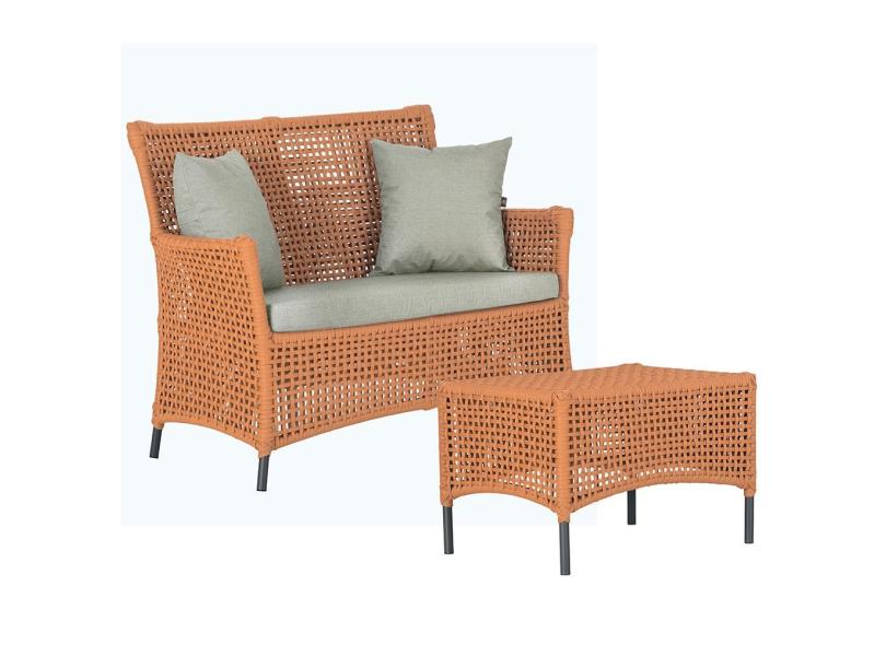 1 Sofá Área e Mesa Igapó Alumínio Pintura Preta Corda Náutica Estofado Impermeável Almofada 3 Trama