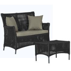 1 Sofá Área e Mesa Igapó Alumínio Pintura Preta Corda Náutica Estofado Impermeável Almofada 8 Trama