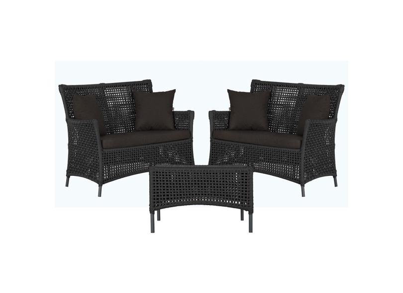 O menor preço encontrado no Brasil para 2 Sofá Área e Mesa Igapó Alumínio Pintura Preta Corda Náutica Estofado Impermeável Almofada 9 Trama atualmente é R$ 6.462,72.