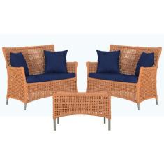 2 Sofás Área e Mesa Igapó Alumínio Pintura Fendi Corda Náutica Estofado Impermeável Almofada 10 Trama