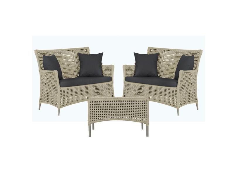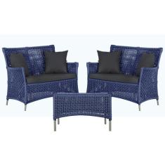 2 Sofás Área e Mesa Igapó Alumínio Pintura Fendi Corda Náutica Estofado Impermeável Almofada 11 Trama