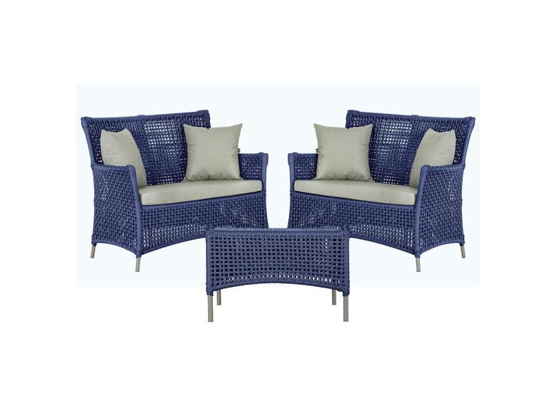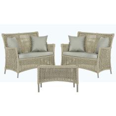 2 Sofás Área e Mesa Igapó Alumínio Pintura Fendi Corda Náutica Estofado Impermeável Almofada 3 Trama