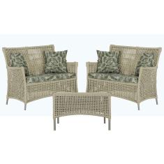 O menor preço encontrado no Brasil para 2 Sofás Área e Mesa Igapó Alumínio Pintura Fendi Corda Náutica Estofado Impermeável Almofada 5 Trama atualmente é R$ 6.844,20.