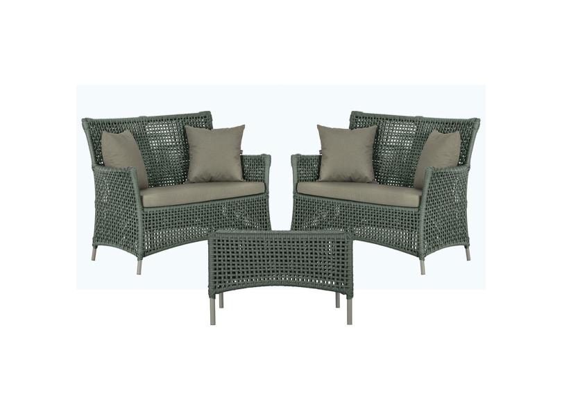 O menor preço encontrado no Brasil para 2 Sofás Área e Mesa Igapó Alumínio Pintura Fendi Corda Náutica Estofado Impermeável Almofada 8 Trama atualmente é R$ 6.462,72.