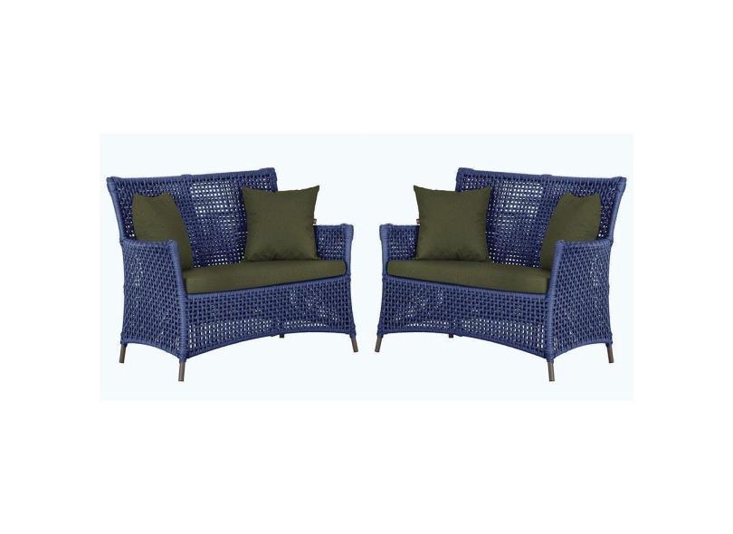 2 Sofás área Externa Igapó Alumínio Marrom Corda Náutica E13 Azul