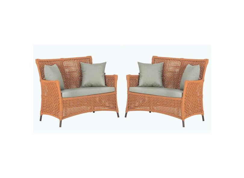 2 Sofás área Externa Igapó Alumínio Marrom Corda Náutica E3 Terra Cota