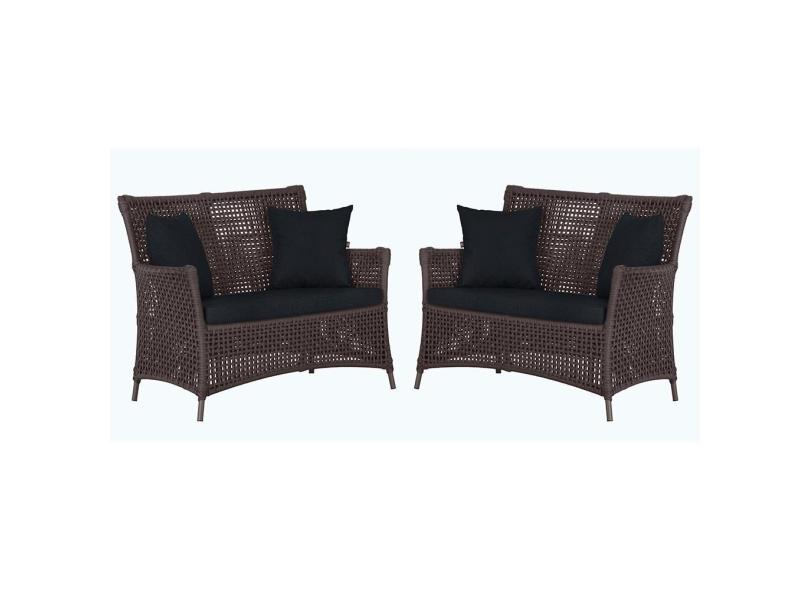O menor preço encontrado no Brasil para 2 Sofás Área Externa Igapó Alumínio Pintura Marrom Corda Náutica Estofado Impermeável 12 atualmente é R$ 5.990,20.