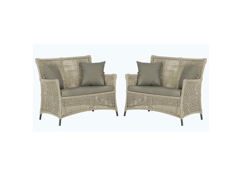 O menor preço encontrado no Brasil para 2 Sofás Área Externa Igapó Alumínio Pintura Preta Corda Náutica Estofado Impermeável 8 atualmente é R$ 5.990,20.