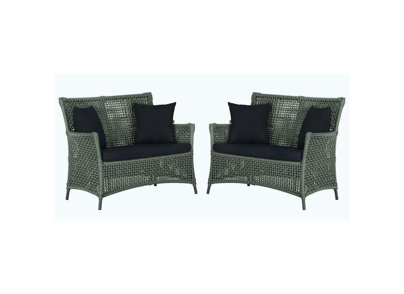 2 Sofás área Externa Igapó Alumínio Preta Corda Náutica E12 Verde