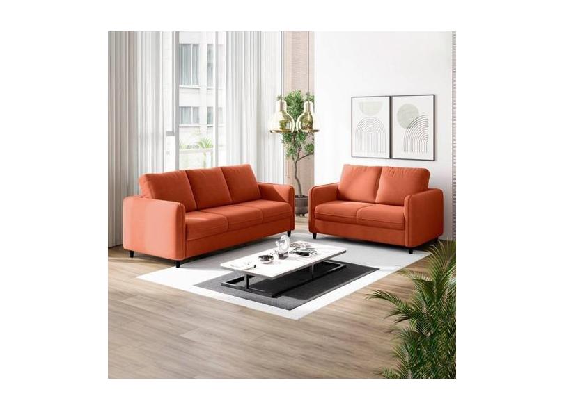 Conjunto de Sofá 2 e 3 Lugares em Veludo Orquídea CabeCasa MadeiraMade