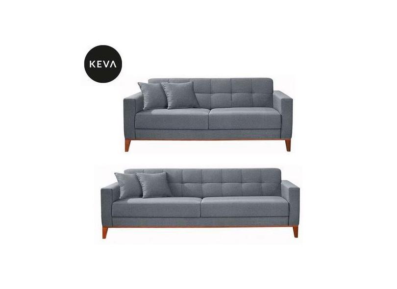 Conjunto de Sofá 2 e 3 Lugares Kivik Capitonê Cinza - Keva