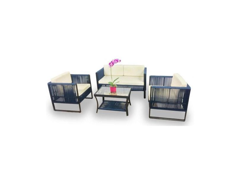 Conjunto De Sofá Bahamas Corda Náutica - 1 Sofá + 2 Poltronas + Mesa C