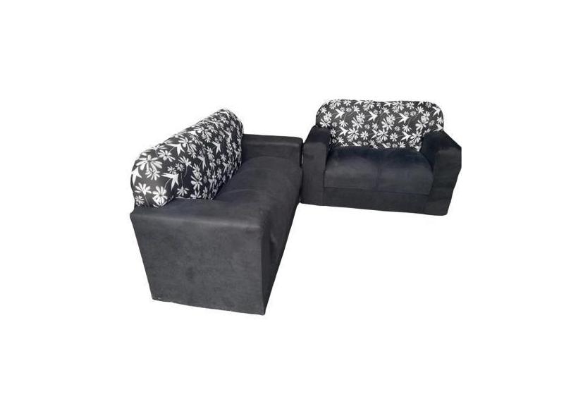 Conjunto De Sofá De 2 E 3 Lugares Preto Estampado - Aurea Decor
