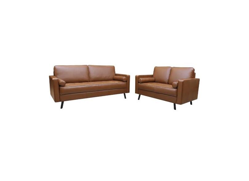 Conjunto Sofá de Couro 2 e 3 lugares Vancouver M06 Cor Conhaque 457 - Amarena Móveis