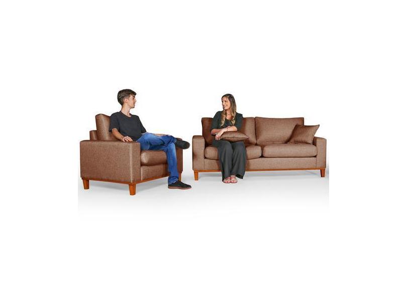 Conjunto Sofá Living Istambul Com Uma Poltronas Tecido Linho - Essenci
