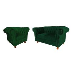 Conjunto Sofa Namoradeira Chesterfield Capitone Suede Verde Bandeira /