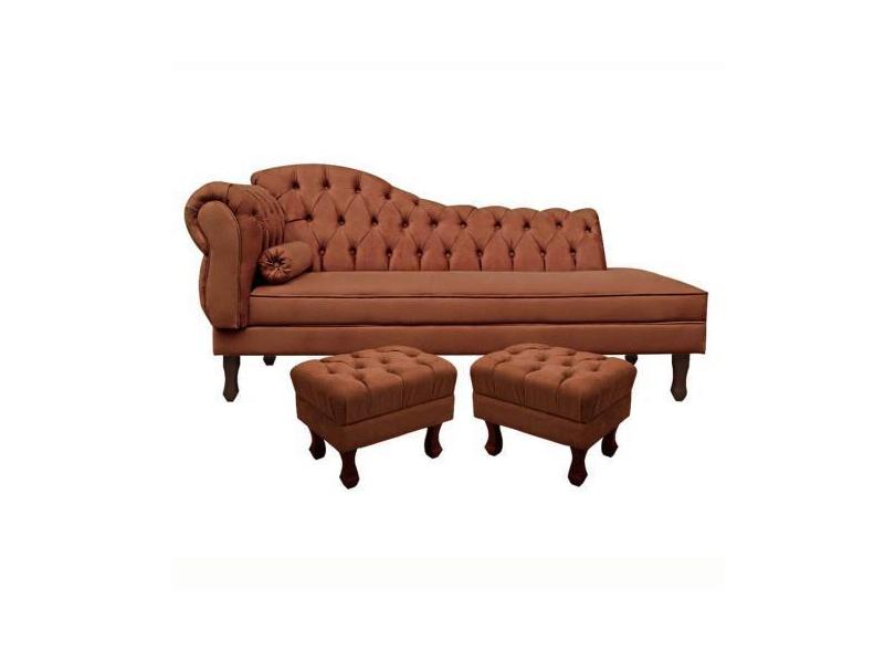 Divã Recamier Namoradeira Larissa 140cm com Capitonê - Direita + 02 Pu