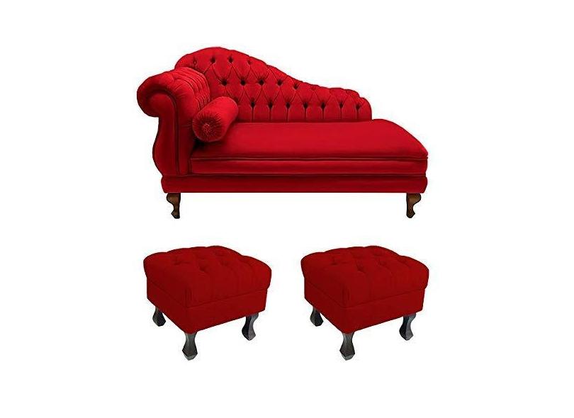 O menor preço encontrado no Brasil para Divã Recamier Namoradeira Larissa 150cm + 2 Puffs Retrô Suede Vermelho - LM DECOR atualmente é R$ 1.723,28.