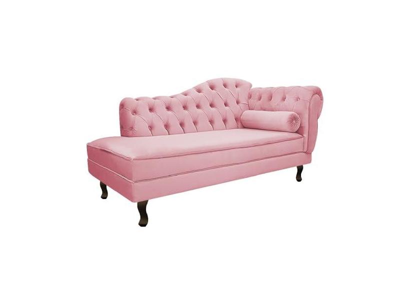Divã Recamier Sofá Juliana 140cm Lado Esquerdo Suede Rosa Bebê Sala de Estar Recepção Quarto Escritório Capitonê Luis XV - AM Decor
