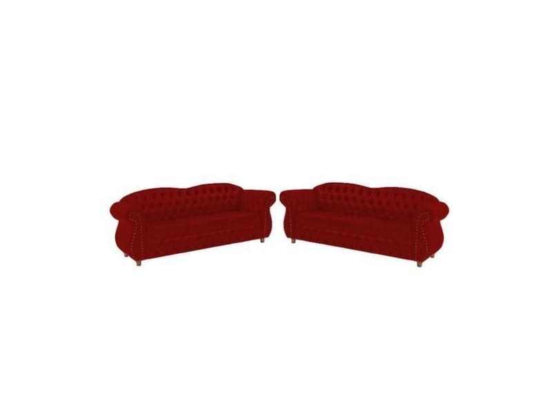 Dois Sofás Chesterfield Merlo 3 Lugares 2,30 - Suede Vermelho / Decora