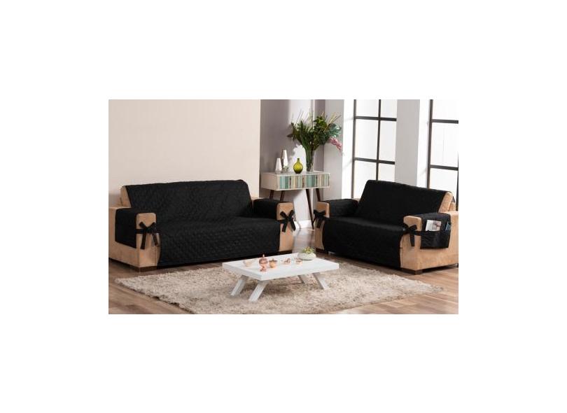 jogo de sofá 2 e 3 lugares com laço e porta controle preto - BruceBaby