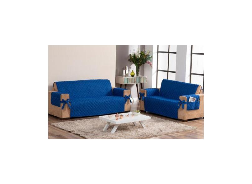 Jogo De Sofá 2 E 3 Lugares Costurado Com Laço E Porta Controle Azul -